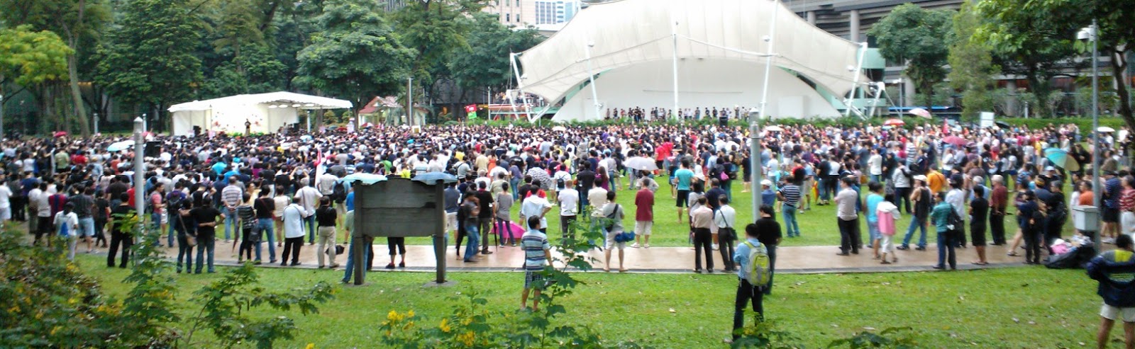 The wife came from KL, Malaysia to Singapore when she was about 14 years old in the 1980's. Now a "pink IC" holder (a citizen of Singapore). We were at Hong Lim Park.